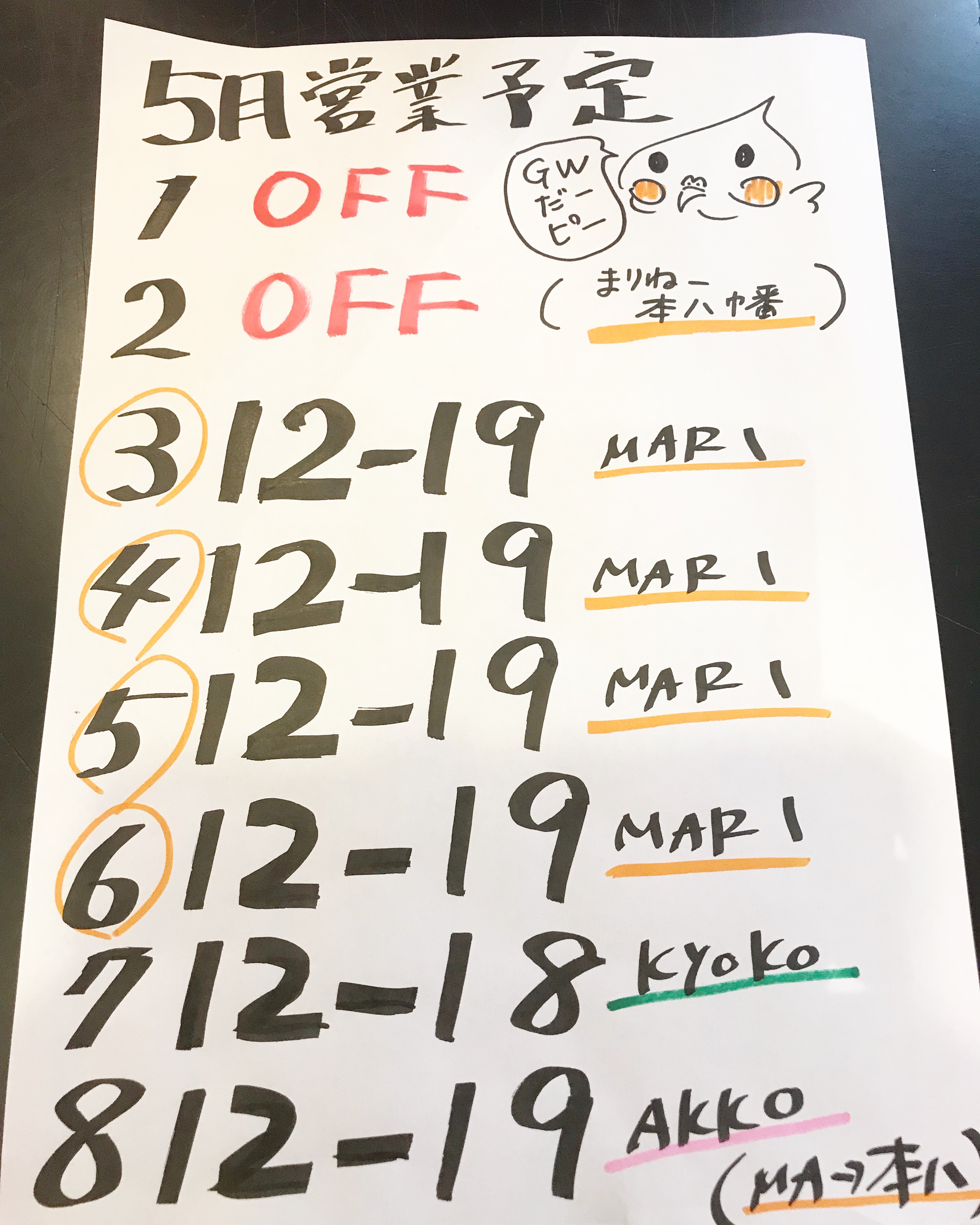 商店街にも人通りが少なく、、、これだけ大型連休だと遠くにお出かけしちゃうんですかね〜〜?